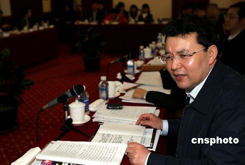 3月4日,全国政协十一届二次会议进行小组讨论,共青团中央书记处书记尔肯江·吐拉洪在讨论时谈新疆发展与治安问题。中新社发 傅丹丹 摄