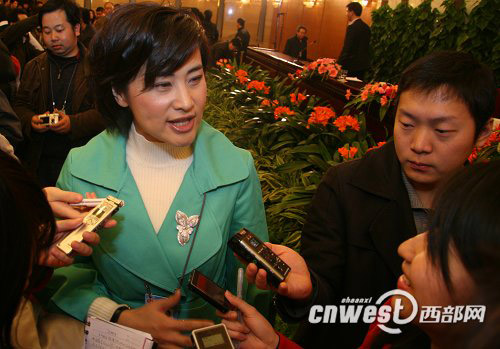 媒体记者蜂拥采访同行吴小莉。刘晓斌 摄