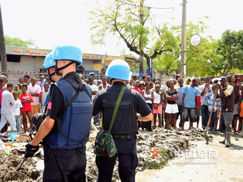 近日,300余名海地民众在太阳城国家一号公路举行游行示威,并设置路障,致使交通堵塞。中国第七支驻海地维和警察防暴队根据联海团指令,迅速赶往现场进行处置,成功化解了矛盾,及时恢复了交通。
