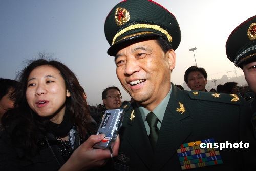 3月5日,第十一届全国人大二次会议开幕会在北京人民大会堂隆重举行。图为解放军代表舒玉泰在会前接受记者采访。 中新社发 李松 摄