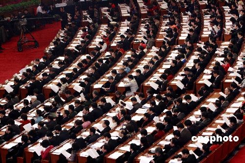 图:人大代表听取温总理作政府工作报告——中新网