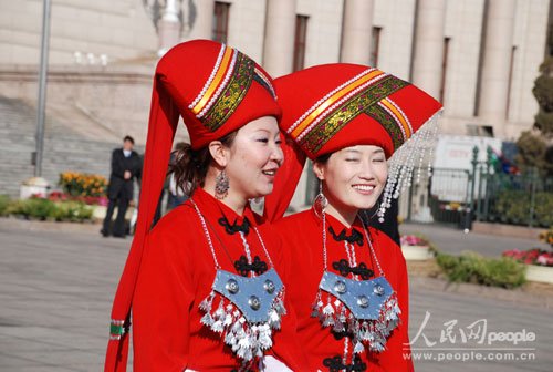 图:两会上美丽的壮族礼仪姑娘(2)——中新网