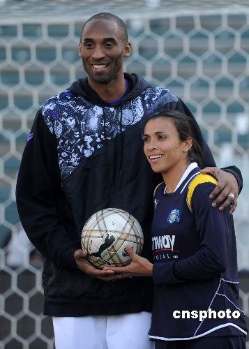 图:NBA篮球巨星科比展示足球功夫(2)——中新网