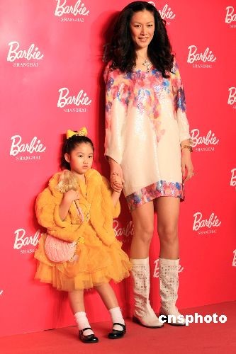 3月6日,名模琦琦携女儿在上海出席芭比全球首家旗舰店——“芭比上海”开幕盛典。当日,众多明星云集“芭比上海”,为芭比50周年庆生。中新社发 汤彦俊 摄