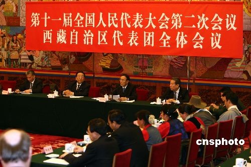 3月6日,十一届全国人大二次会议西藏自治区代表团在人民大会堂举行全体会议,吸引众多中外媒体的记者。会后,西藏自治区人大常委会主任列确、西藏自治区主席向巴平措等接受了中外媒体的采访。中新社发 杜洋 摄