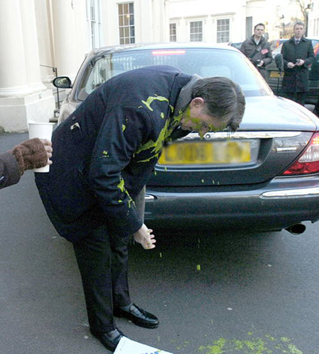 组图:英国商务大臣遭抗议者奶油泼脸(2)