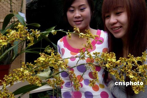 3月7日,为庆祝“三.八”国际妇女节的到来,北京植物园举行赏花送花活动。特设的“女人花”展区内展示的花卉名称中均带有“女”字:如“小叶女贞”、“舞女兰”、“美女樱”等。每位在热带展览温室参观的女士,可以得到一束美丽的康乃馨。中新社发 钱兴强 摄