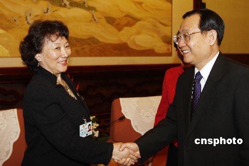 3月7日,全国政协副主席王刚在北京会见列席全国政协十一届二次会议的海外侨胞。中新社发 盛佳鹏 摄
