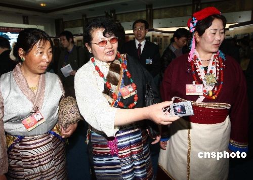 图:藏族女代表在京参观西藏民主改革50年展——中新网