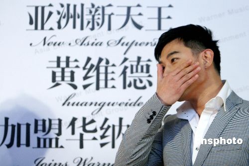 2009年3月9日,台湾影视红星黄维德加盟华纳唱片签约发布会在北京隆重举行。蔡依林恩师陈泽杉送上绣有“金榜题名”的卷轴。事逢前日伊能静博客突发感言表明已和庾澄庆离婚,使牵手门中的主角黄维德再次被推上风口浪尖。发布会中黄维德感叹生活多揣,看到依旧坚定支持的歌迷突然落泪、抽咽。随后的媒体访问在问题逐渐深入的过程中黄维德最终难再支撑,匆匆离去。中新社发 袁方 摄