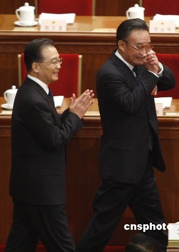 图:吴邦国、温家宝向人大代表致意——中新网