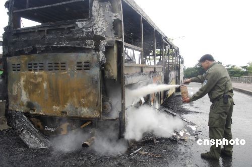 3月10日上午,广东深圳一辆公交车在深南大道向东行至园博园站前时突然起火,大火烧了近半个小才被熄灭,整辆车被烧的只剩框架。所幸车上乘客及时逃脱,未造成人员伤亡。据初步了解,大火由于线路短路引起,具体原因有待进一步的调查。