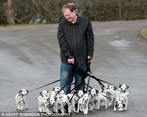 近日,英国一只名叫“纽扣”的斑点狗妈妈的主人莫利带着18只斑点狗幼崽在公园散步,现在它们已经11周大了。莫利说,这对于他简直就是一个噩梦,有一天他可能真会牵着101只斑点狗散步。1月8日,“纽扣”产下了18只小斑点狗,成为世界上最多产的狗妈妈。