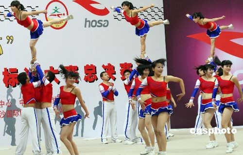 图:汶川学生热泪盈眶北京演绎健美操(4)——中新网