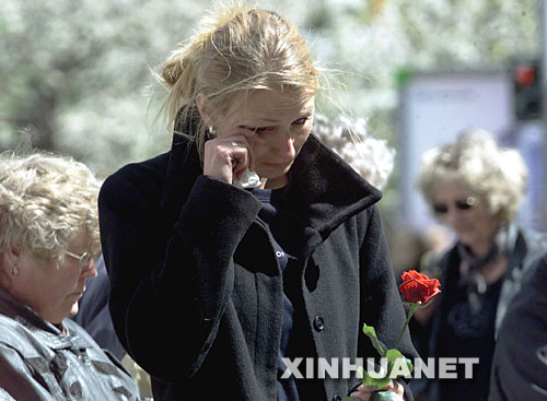 2002年4月,德国爱尔福特一名学生在拒绝参加数学考试后拔枪打死17人,之后自杀。这是2002年4月29日,人们络绎不绝地来到德国爱尔福特市古滕贝格中学门前,悼念校园枪击案中的遇害者。