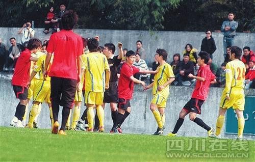 这是一个毛家湾阳光很好的午后,却激荡着川足与成足关于一个球员的怨愤,比赛从一开始就充满了火药的味道。争吵、拉扯、对峙、群殴……像极了江湖决斗。汪嵩冲冠一怒冲在了人群争斗的最前线;昔日大佬魏群冲进场内怒吼——“你娃是不是不想踢球了?”球员们、球迷们则是个个群情激奋……