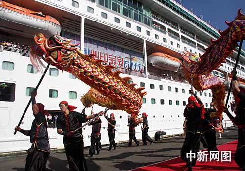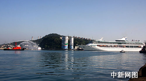 三月十六日上午八时二十分许,“安利心印宝岛万人行”首航邮轮“海洋神话号”载着一千六百名安利中国大陆首发人员缓缓驶进台湾基隆港。这是两岸基本实现“三通”以来第一个抵台的邮轮直航团。中新社记者 陈立宇 摄