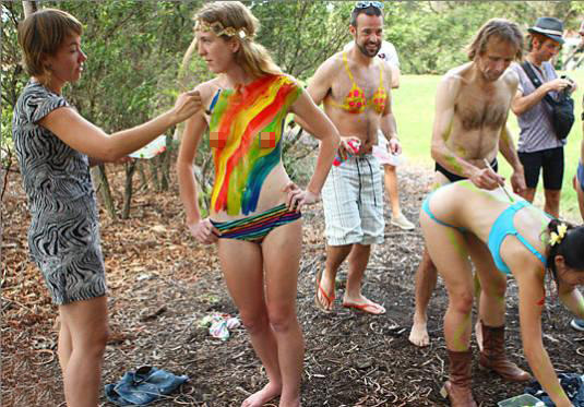 图:彩绘、树皮遮体蹬车 裸体自行车赛呼吁环保(3)——中新网