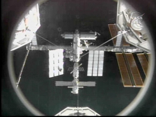 北京时间18日5时19分,美国“发现”号航天飞机安全飞抵国际空间站,并与之对接。