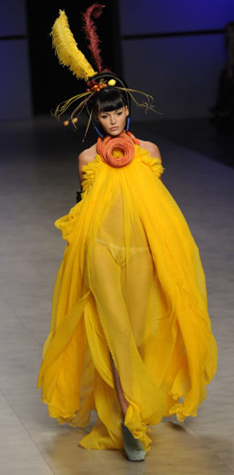 3月16日,模特在乌克兰首都基辅举行的时装周上展示造型奇丽的发型设计。