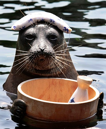 3月17日,日本东京一水族馆内一头名叫“贝利”的雄性贝加尔湖海豹,在水中摆出了泡温泉时的造型,博得游客笑声不断。