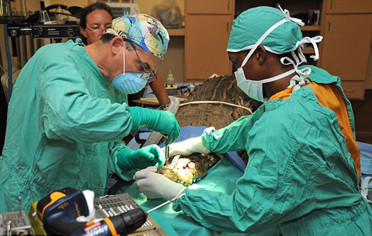 组图:受伤鳄鱼手术后变身“机器鳄鱼”(2)——中新网
