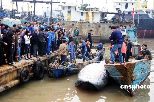图:浙江舟山发现一条10多吨重无名大鱼(2)——中新网