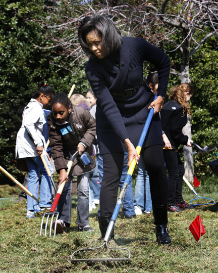 组图:奥巴马夫人在白宫草坪上修建菜园(2)