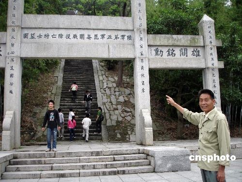 三月二十一日,在广西境内昆仑关,当地民众自发前去缅怀抗日英魂。一九三九年冬,国民政府陈兵三十多万,与十万侵华日寇展开桂南会展,一场昆仑关战役血拼十四天,中国抗日攻坚战取得首次胜利,昆仑关大捷一时震撼四方。日寇死亡五千多人,少将旅团长中村正雄被击毙,一万四千多中国抗日将士和援战百姓牺牲。图为一位义务守护昆仑关二十余年的当地老者欧启伦,向人介绍当年昆仑关战役的惨烈场面。中新社发 黄艳梅 摄