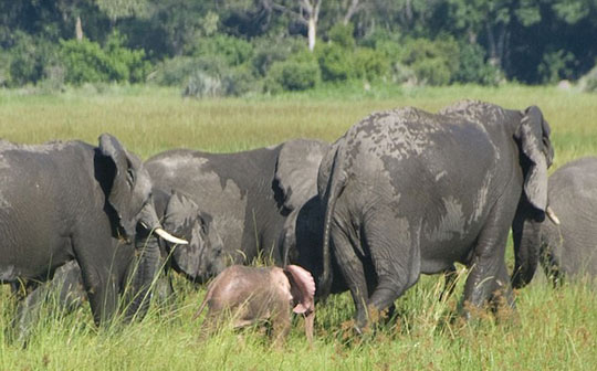 图:摄影师拍摄到疑患白化病的粉红色小象 (2)——中新网