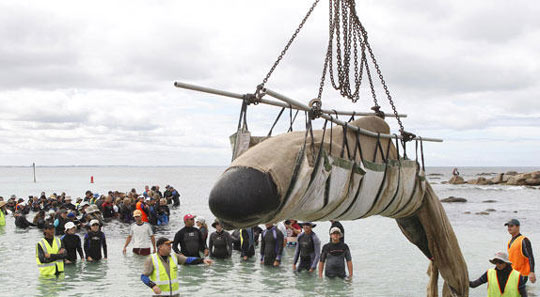 图:澳大利亚志愿者营救搁浅的鲸鱼和海豚(3)——中新网