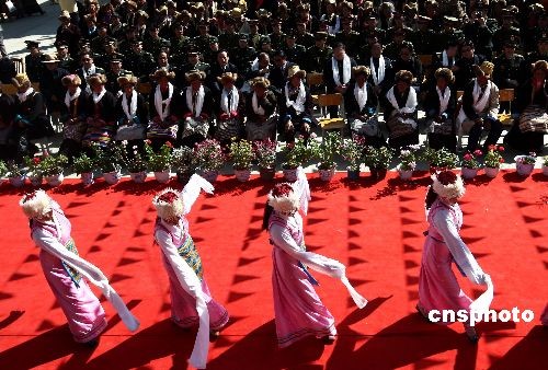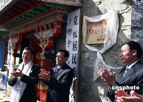 3月24日,在“西藏百万农奴解放纪念日”即将来临时,作为西藏民主改革第一村的西藏山南地区乃东县昌珠镇克松村与西藏山南军分区某部一起举行“军民共建小康示范村”揭牌仪式。此后,克松村民的基础设施建设、教育、医疗等各方面都将得到解放军更多的帮助。中新社发 杜洋 摄
