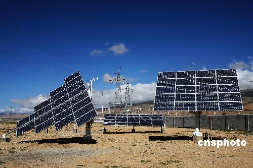 3月26日消息,随着世界光伏产业的迅速发展,在空旷地区建设大规模光伏电站越来越受到人们的瞩目。羊八井光伏电站就是我国第一座与高压电网并联运行的光伏电站,发出的电能并入藏中电网,供给拉萨市及周边地区使用。经过一年的实际运行计量表明该电站年发电量为18.3万度左右,可以满足约150户居民的日常用电需求,每年可以节约75吨标准煤,减排二氧化碳275吨。羊八井100Kwp光伏示范电站在国内首次采用直接并入10kv高压电网的技术方案,在不影响原有电网的结构和安全稳定的情况下,为进一步在西藏地区推广太阳能并网发电做出了示范。中新社发 扎西朗杰 摄