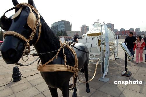 3月27日,由国家民政部门举办的2009春季中国(北京)国际婚博会在北京展览馆开幕。婚博会包括婚纱摄影精品区、婚纱礼服精品区、结婚首饰精品区、婚宴酒店精品区、婚礼策划及服务精品区、婚礼庆典用品精品区等展区。图为婚礼策划及服务精品区在场外展示庄园婚礼特色。中新社发 邹宪 摄