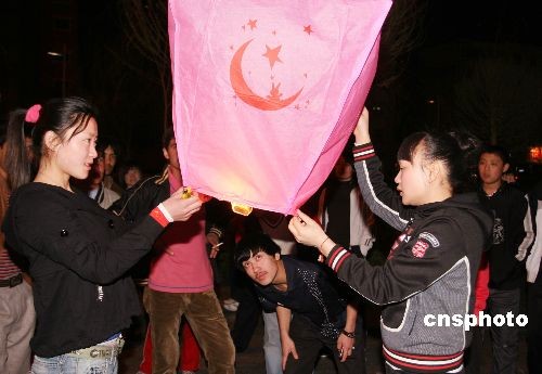 图:新疆市民放飞孔明灯响应“地球一小时”
