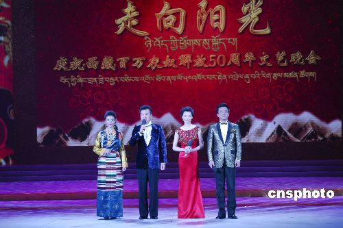 3月28日晚,“走向阳光——庆祝西藏百万农奴解放50周年文艺晚会”在北京举行。晚会展现50年来西藏在中国共产党领导下发生的翻天覆地的变化。当日上午,西藏自治区在拉萨举行庆祝大会,庆祝西藏百万农奴解放50周年。