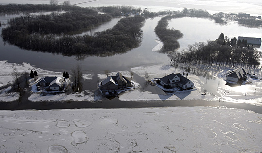 美国红河遭遇百年不遇洪水 料10万人受灾(图)