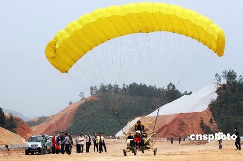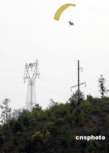 福建永安供电局使用动力伞架设输电线路(3)