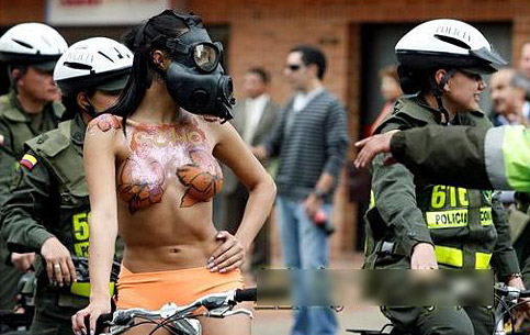 图:哥伦比亚女志愿者裸体抗议环境污染(2)