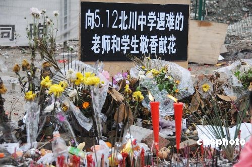 清明节前夕,在“5.12大地震”遭毁城的四川北川县连日向民众开放封闭保护的废墟,让百姓祭奠遇难亲人。
