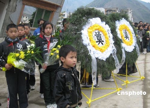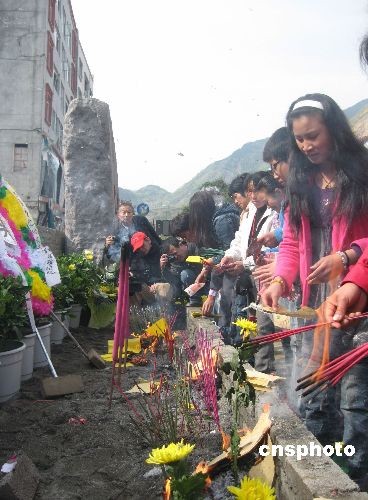 4月4日上午,震后首个清明节,四川省北川羌族自治县近千名民众公祭“5·12”汶川大地震遇难同胞。