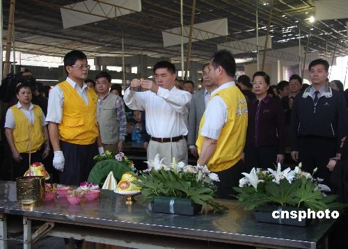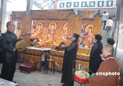 4月4日清明节,台北市政府出资两万元新台币在富德公墓灵骨楼前设立清明诵经超度法会。中新社发 耿军 摄