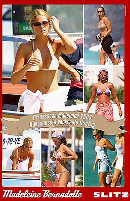 1. 瑞典公主玛德莲 以天生丽质和平易近人的形象深得民众爱戴。03年时一本瑞典畅销杂志还特别将公主的照片做成拉页海报。使王室十分愤怒,皇家发言人伊丽莎白还曾告诉瑞典晚报《Aftonbladet》记者:“玛德莲公主可不想成为海报模特被人随意钉在墙上”。