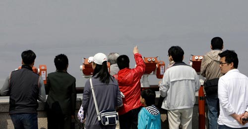 游客观看朝鲜火箭发射。
