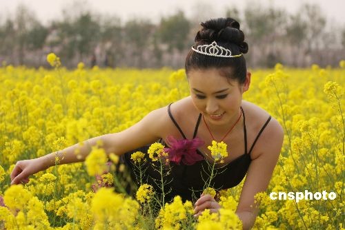 图为河南赛区季军孙珊珊与春日鲜花比美。中新社发 王中举 摄