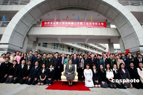 国务院侨办主任李海峰、华侨大学校长丘进和在校泰国学生一同迎接公主并与其合影。中新社发 傅丹丹 摄