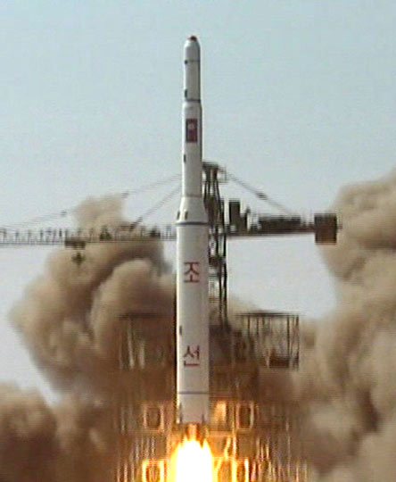 组图:朝鲜电视台公布运载火箭发射场面(3)