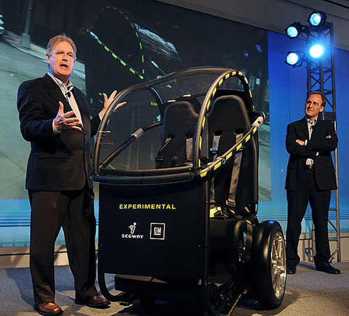 当地时间4月7日,美国纽约举行了一场新车型发布会。在发布会上,美国通用汽车公司宣布将与赛格威公司联合研发一种双轮双座电动汽车。这种汽车占地小、价格低,能够自动行驶并避免事故和交通拥堵。这款新车计划最晚于2012年推出。