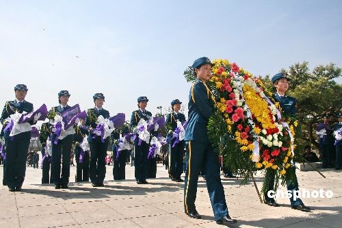 清明节期间,16名中国首批歼击机女飞行员手捧鲜花到辽沈战役纪念馆祭扫烈士墓。据了解,4月2日,这些女飞行学员以全优成绩从空军第三飞行学院毕业。中新社发 李张建 摄