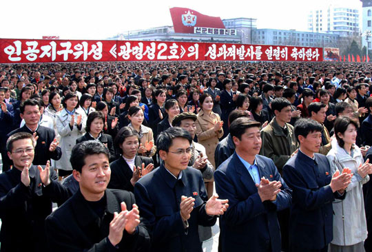 组图:朝鲜10万军民集会庆祝卫星发射活动(3)